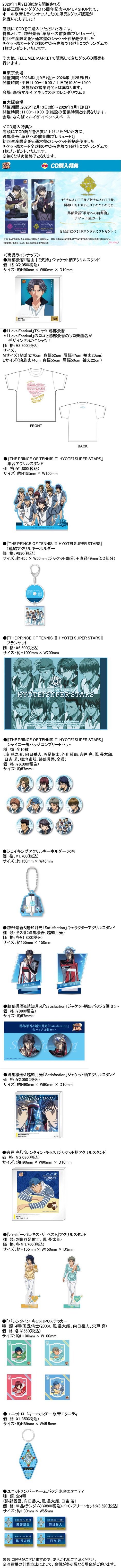 跡部王国(キングダム) 15周年記念POP UP SHOPにて、オール氷帝をラインナップしたCD販売&グッズ販売が決定!